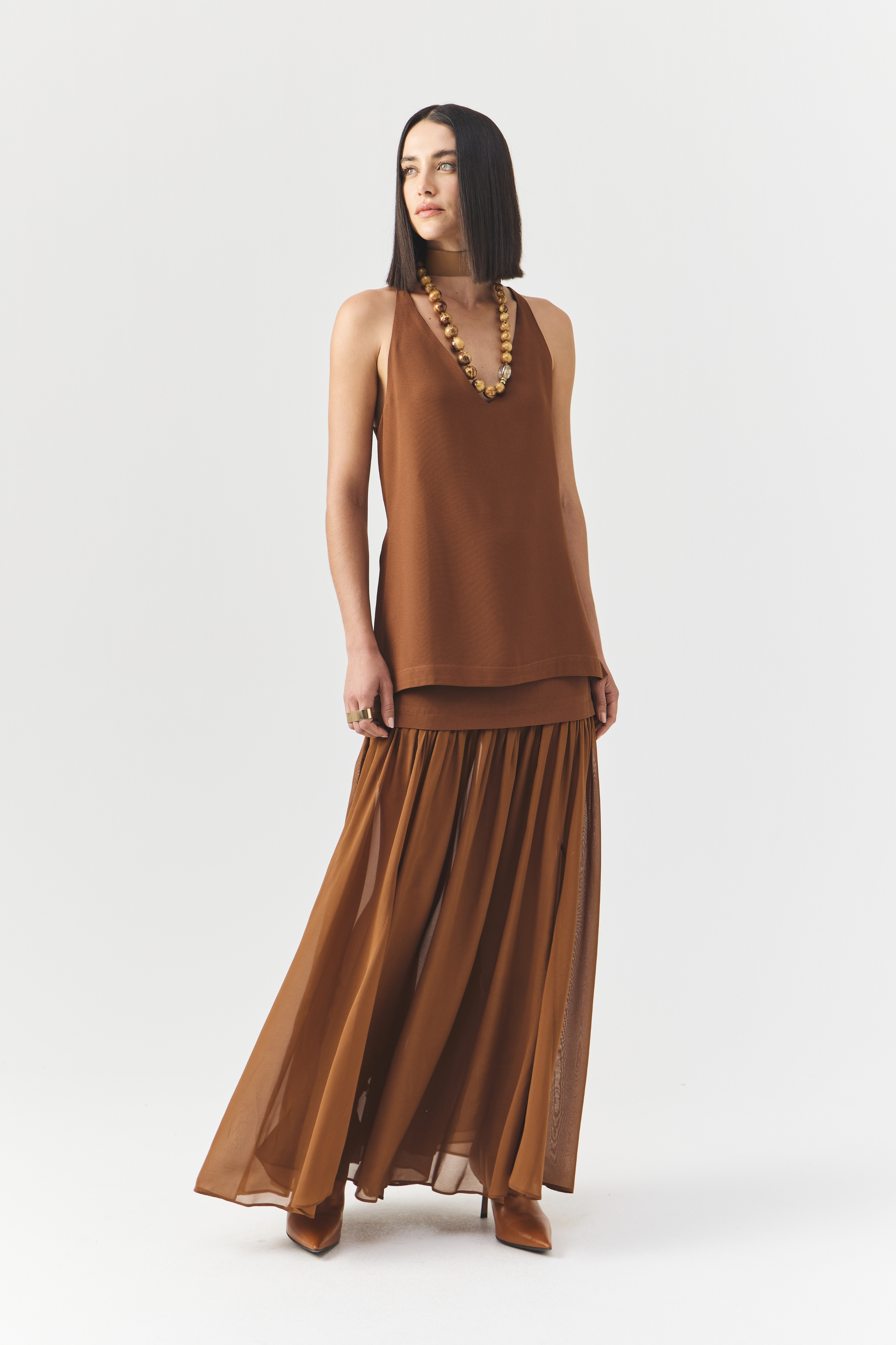 Confeccionado em crepe de acetato, possui toque macio e caimento fluido, combinando leveza e estrutura na medida certa.
