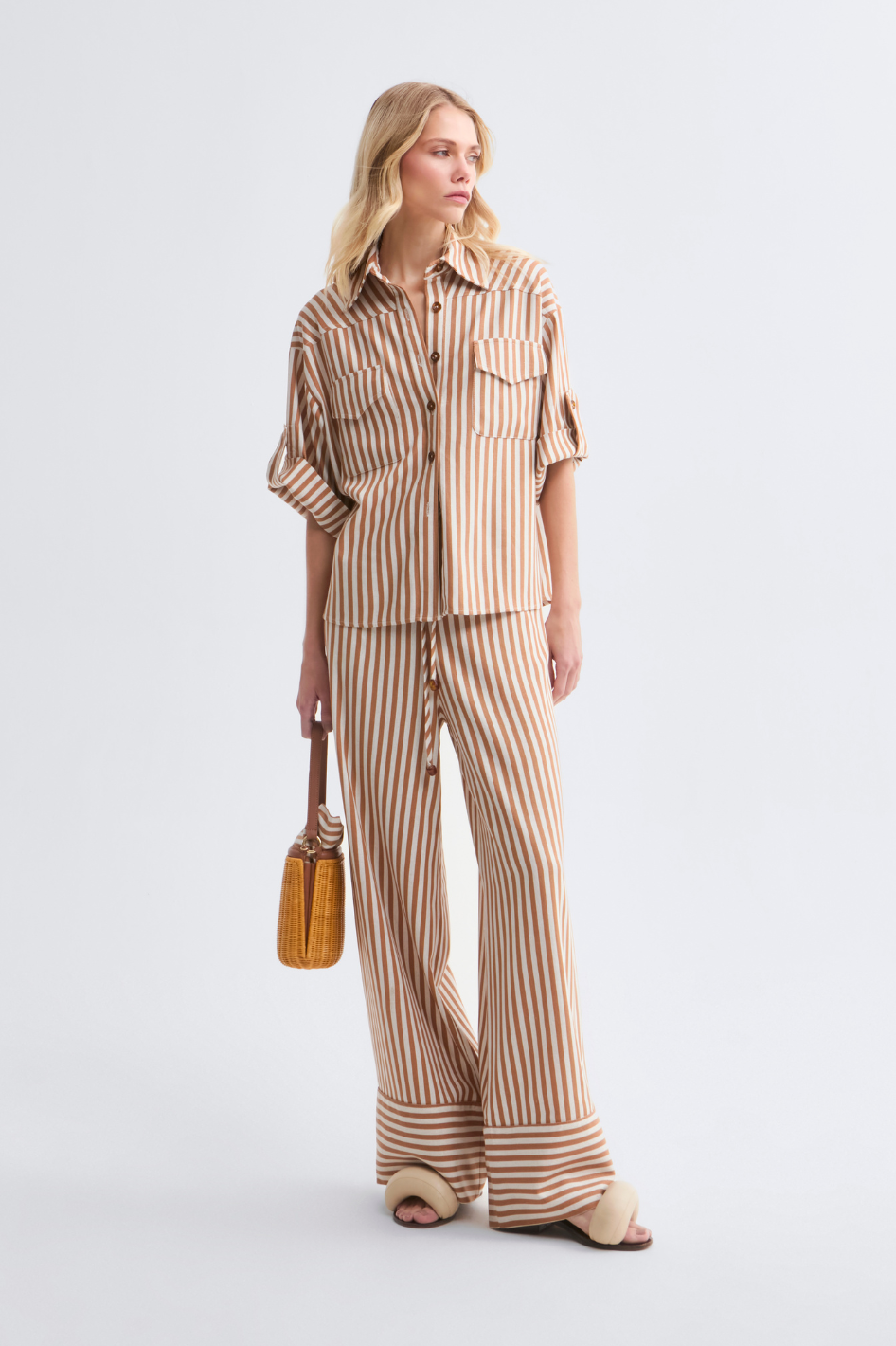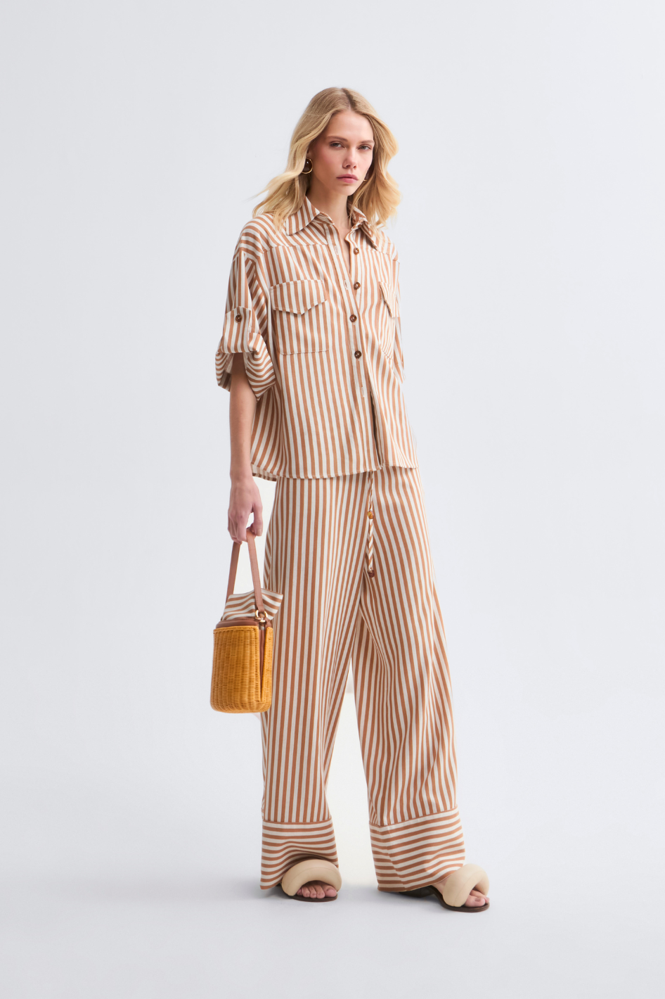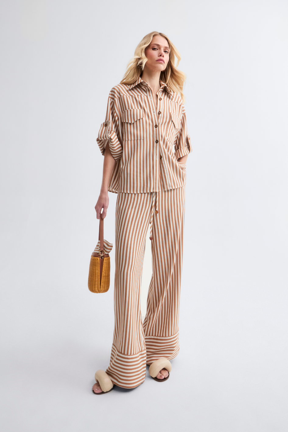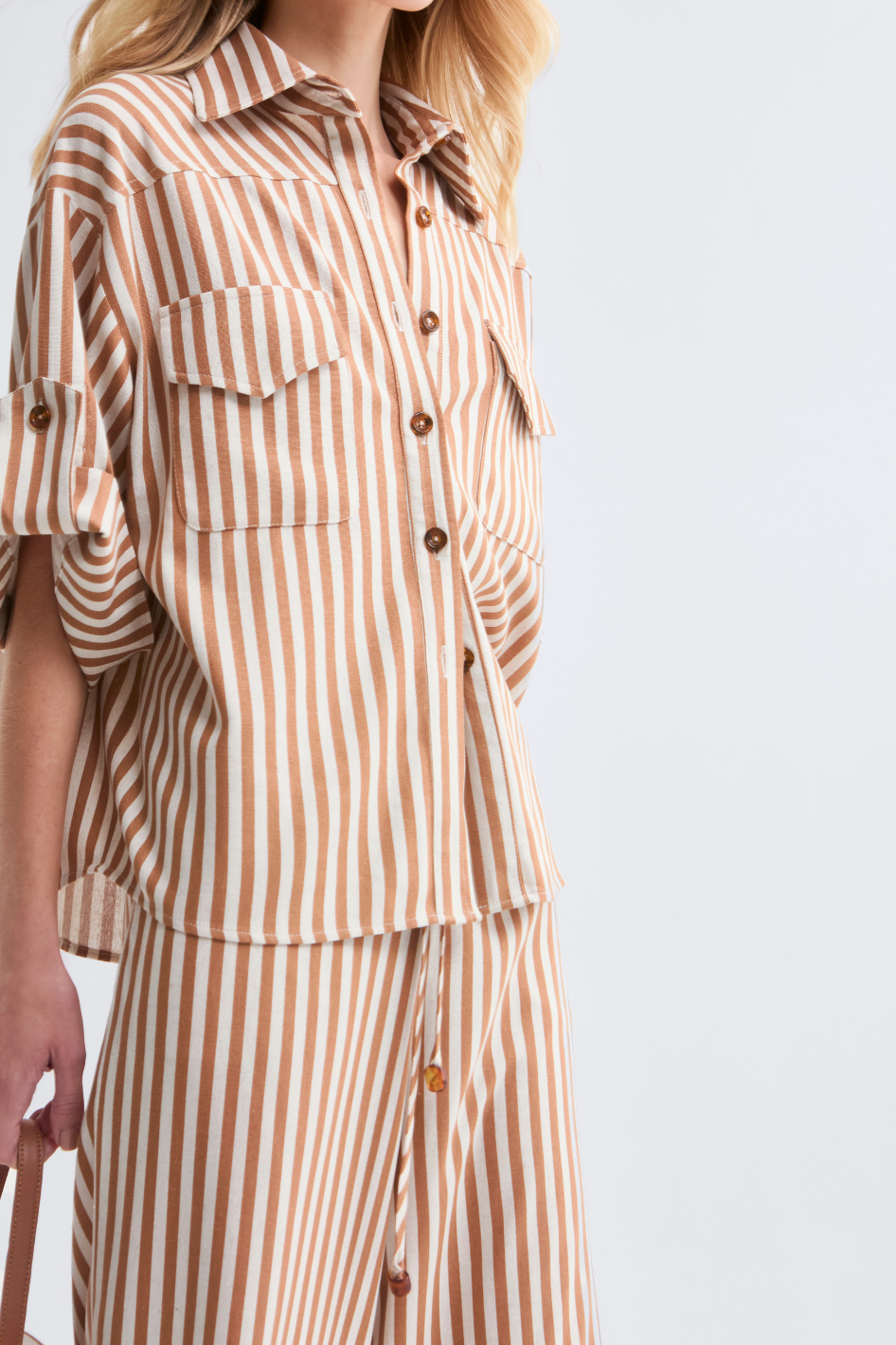 Com uma elegância casual e proporções relaxadas, a Camisa Ava traduz o effortless chic em sua melhor forma. Sua modelagem ampla traz leveza imediata ao visual, enquanto as mangas com martingale revelam a versatilidade de uso – podendo ser usadas mais soltas ou dobradas, conforme a proposta.